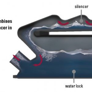Voor een goede installatie heeft u naast een geluiddemper- ook een waterlock nodig.