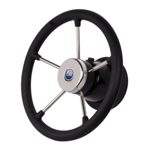 Craftsman Marine stuurwiel Trivere: dit Craftsman Marine stuurwiel is gemaakt van duurzaam roestvrij staal. De rand is voorzien van een rubber grip, voor veiligheid en goed aanzicht. Dit stuurwiel wordt veelal toegepast op sloepen en heeft een mooie compacte diameter van Ø 350 mm. Artikelcode: BN.010.2000