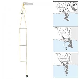 Helpt elk bemanningslid gemakkelijk weer aan boord te komen zonder externe hulp. Geschikt voor huidig gebruik (baden) of in het geval van Man Over Board. Bestaat uit 3 polypropyleen treden en 1 st. stalen handgreep gemonteerd door een zeer resistente lijn, (heldergeel Ø 3 mm polyester).