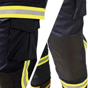 Brandweerjas- en broek van superieure kwaliteit Nomex in marineblauw: gemaakt van vier verschillende lagen voor uitstekende brandbeveiliging en uithoudingsvermogen. Nomex/Kevlar-materiaal biedt een betere bescherming tegen direct vuur en blootstelling