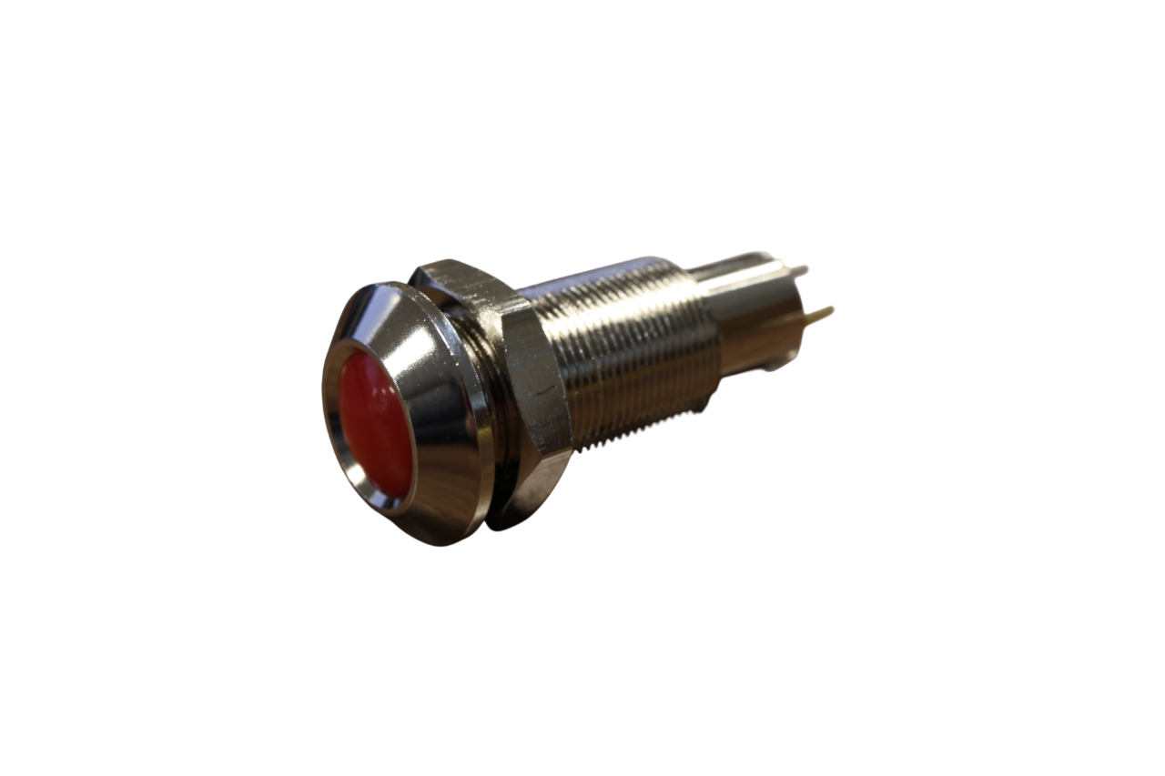 Controlelampje rood van Osculati: van verchroomd messing en met een inbouwdiameter van 18 mm. Geschikt voor zowel 12- als 24V.