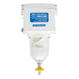 Dit Separ filter van de SWK2000/18 serie wordt gemaakt van een niet corroderend aluminium huis met een polycarbonaat of metalen kom en met RVS aansluitingen.