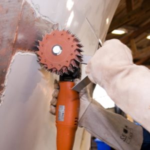 Deze natuur rubberen schijf roterende schijf met 12 hardmetalen pennen wordt als straler toegepast om verontreinigingen zoals verf, roest, teer, epoxy, plamuur en dergelijke van staal, ijzer, beton of steen te verwijderen. Het resultaat kan men vergelijken met een gestraald oppervlak. Dat wil zeggen ruw en rein voor de juiste hechting van de eerste verflaag.