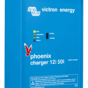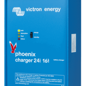 - Victron Phoenix Charger: verkrijgbaar in 12V -> 30- of 50 Ah en in 24V -> 16 of 25 Ah.