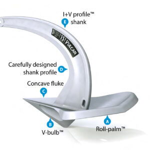 Dit ingraven wordt ondersteunt door de “V-bulb™ (B) welke zorgt voor de juiste ballast van het ankerblad voor maximale efficiency. Deze ontwikkeling zorgt voor een groter ankerblad oppervlak t.o.v. concurrerende ontwerpen.